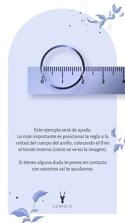 Te explicamos cómo conocer la talla de tu anillo de forma rápida y sencilla. Sólo necesitas una regla. La imagen funciona de guía para que obtengas tu talla y puedas pedir tu anillo Cerinea.